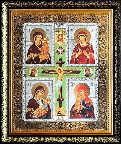Четырехчастная Икона Пресвятой Богородицы (рамка пластик 33х40, стекло)
