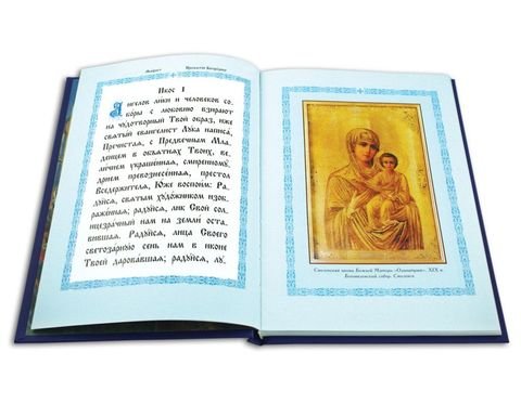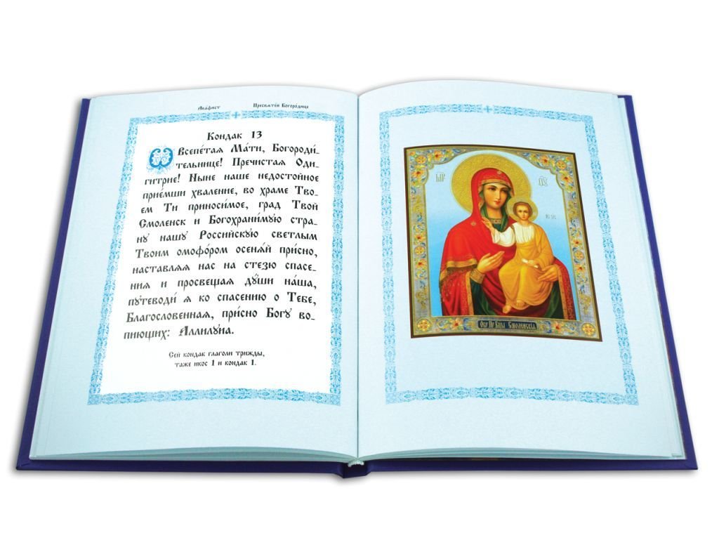 Настоящее издание содержит акафист Пресвятой Богородице в честь чудотворной Ее иконы Смоленской. В издании представлены изображения известных чудотворных икон Божией Матери «Одигитрии» Смоленской. Все иконы в акафисте покрыты лаком, что значительно улучшает качество изображений, придавая им блеск и яркость, и способствуя более длительной их сохранности. Акафист дополнен сказанием о Смоленской иконе Божией Матери, именуемой «Одигитрия».