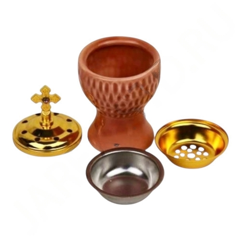 Кадильница, керамическая, крышка металл, цвет персиковый, h 13.Арт.ККМ-002