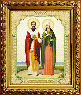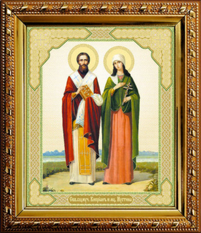 Икона Св. Священномученик Киприан и мученица Иустина (10х12 пр. Лик)