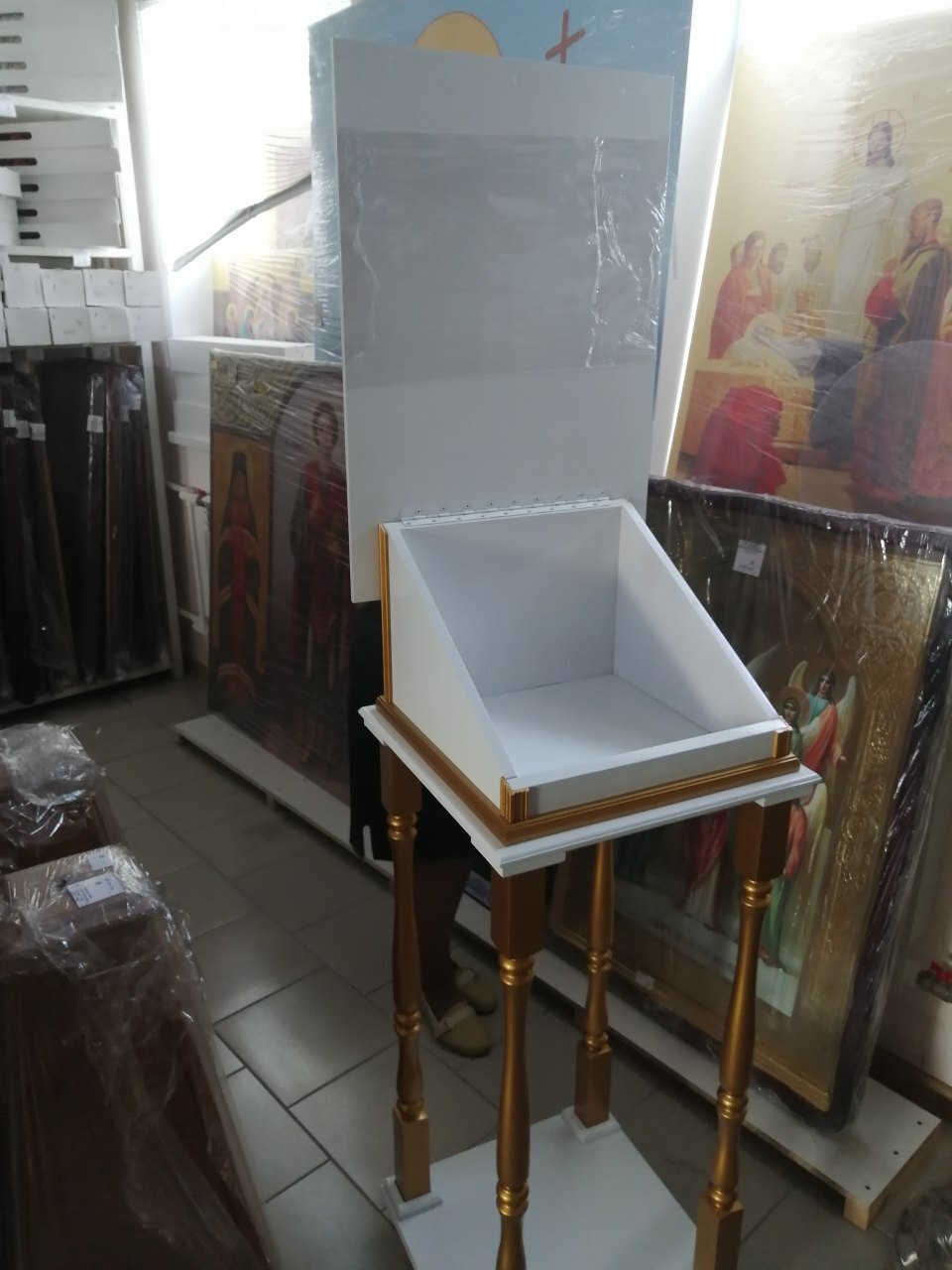 Аналой дер. на 4-х ногах Греческий 45х52х128 Белый с Золотом (Ц)