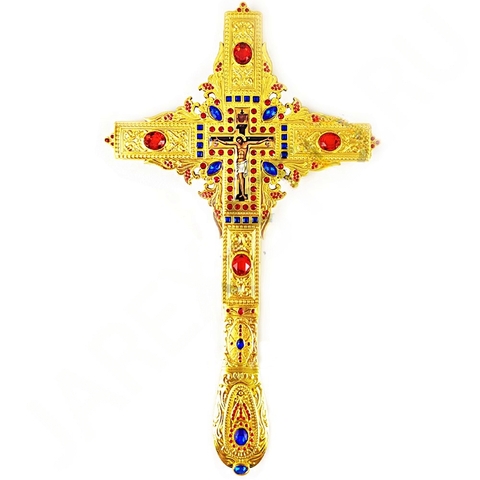 Крест напрестольный, гравировка, камни, цвет "под золото"; h27.Арт. КН-475