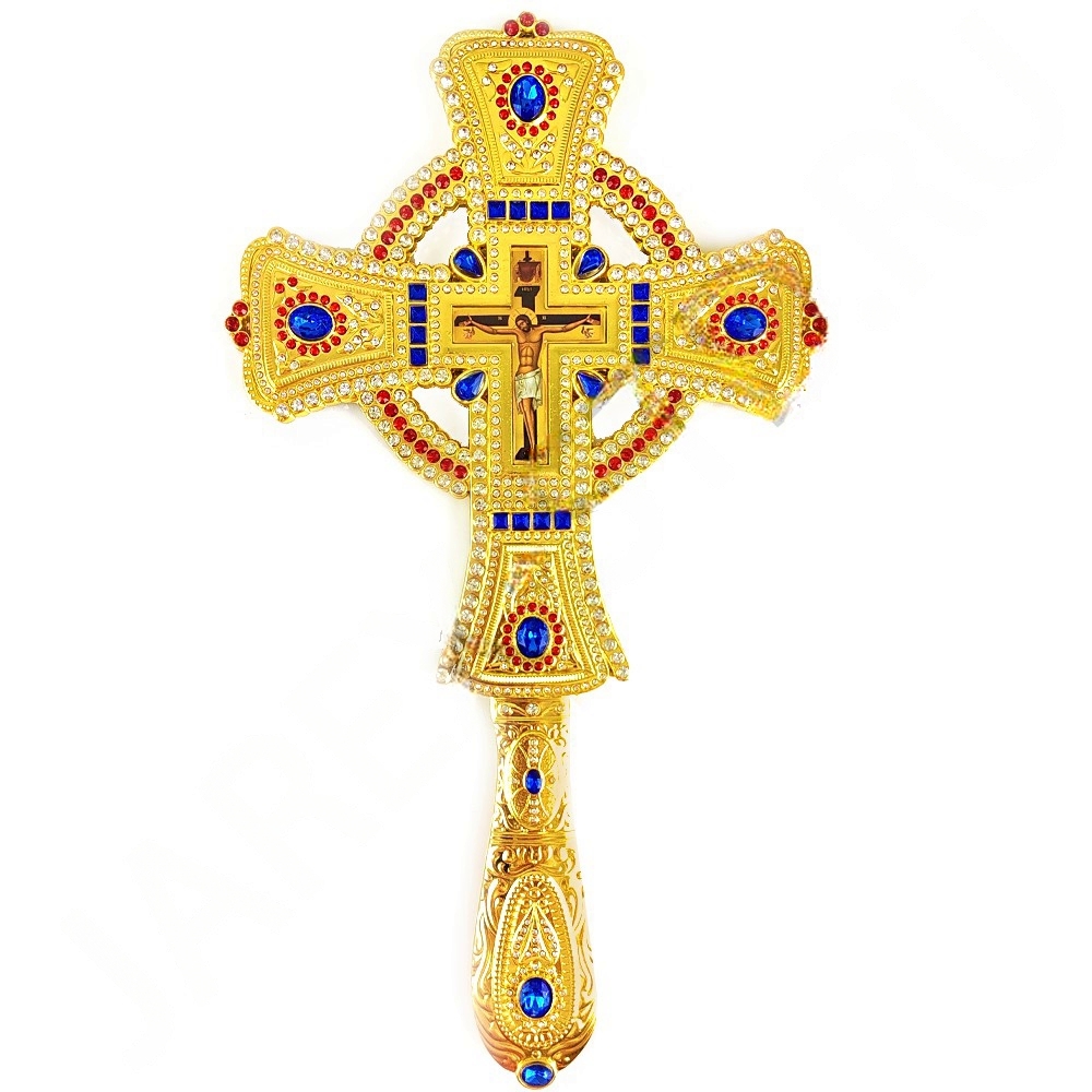 Крест напрестольный, золочение, камни; h27.Арт. КН-227/зол