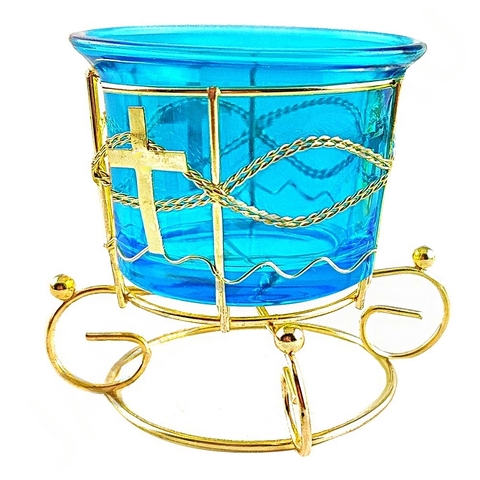 Настольная лампада в металлической оправе, ( комплект: стакан и подстаканник) , голубой, стекло; h7