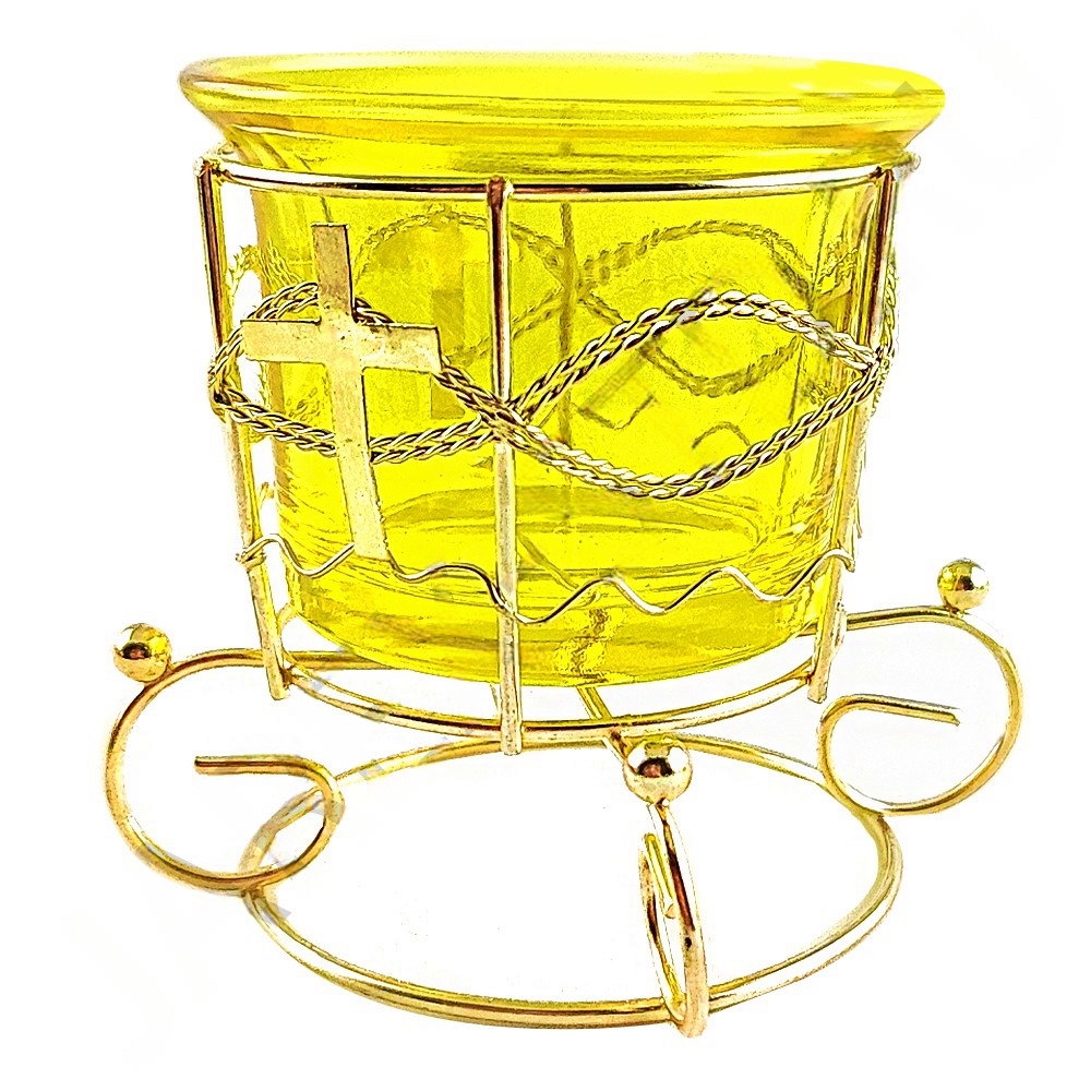 Настольная лампада в металлической оправе, ( комплект: стакан и подстаканник) , желтый, стекло; h7