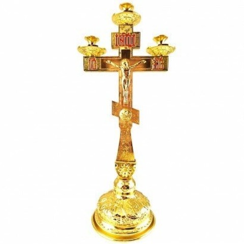Подсвечник напрестольный "Крест" на 3 свечи, цинковый сплав, эмаль; h39.Арт.ПН-868