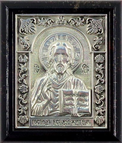 Авто икона Спаситель (квадрат, серебрение, скотч) (5,5х6,5)