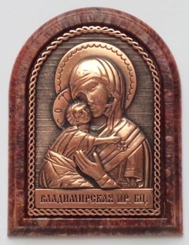 Авто икона арка БМ Владимирская (медь, скотч) (4,5х6)