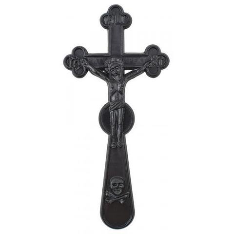 Пластмассовый крестик в руку умершему. Погребальный крест помещают в левую руку покойного. Цвет: чёрный. Размер: 14х7 см. упак. 10 шт